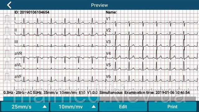 Попередній перегляд кривої ЕКГ на 5-дюймовому сенсорному екрані для перевірки якості сигналу перед друком, що допомагає заощадити папір для друку та своєчасно підтвердити якість кривої.